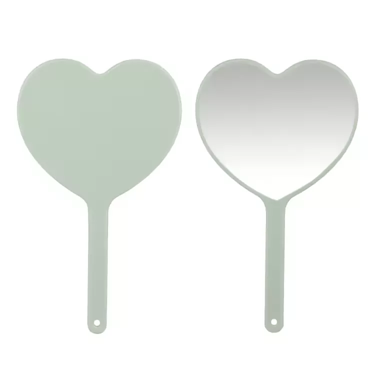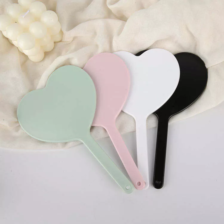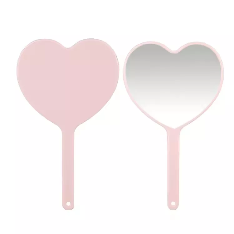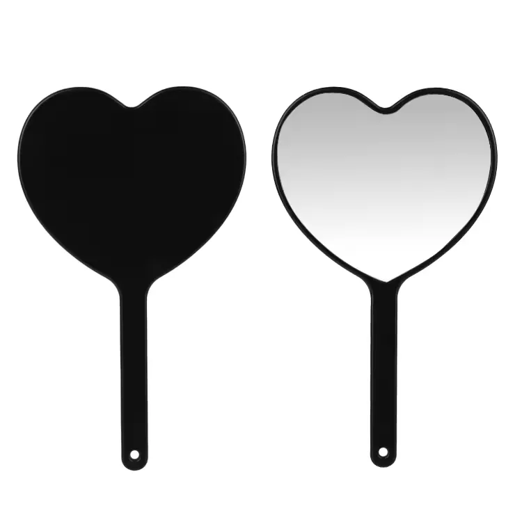 Este lindo espejo de maquillaje de mano en forma de corazón cuenta con una superficie de vidrio de alta definición sin distorsiones para una aplicación precisa del maquillaje. Su mango de plástico liviano con orificio para colgar garantiza un fácil transporte y almacenamiento. Disponible en varios colores, admite la impresión de logotipos personalizados, ideal para etiquetas privadas, regalos o uso en salones de belleza.
