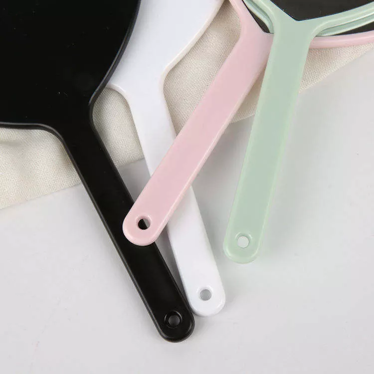 El espejo está encerrado en un marco de plástico liso y resistente que protege el cristal de arañazos e impactos. Disponible en varios colores de moda (rosa, negro, blanco, verde menta), el marco es resistente al desgaste, lo que garantiza un uso duradero y un aspecto pulido.