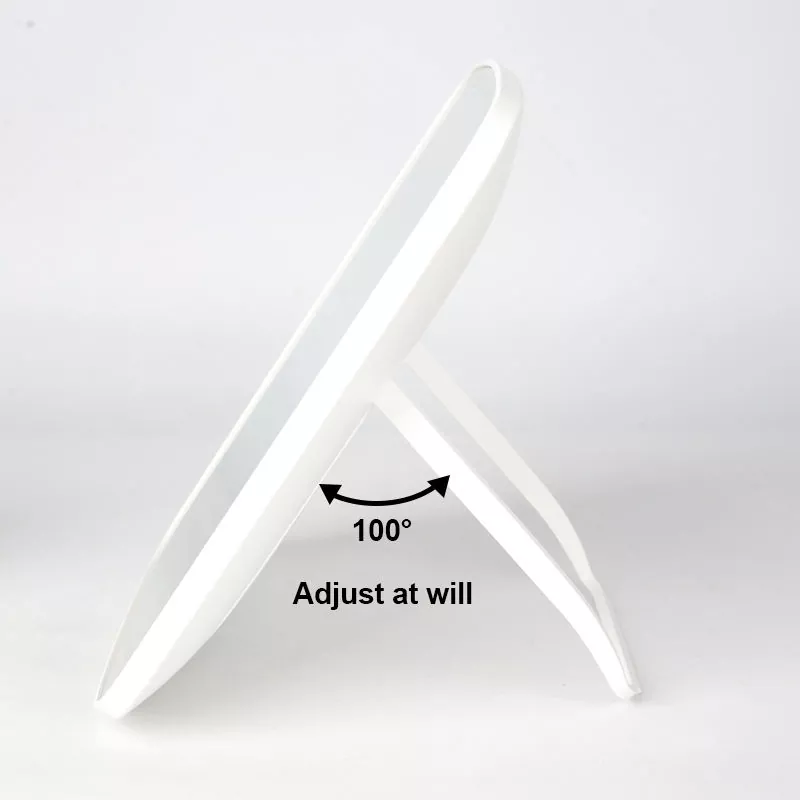 Equipado con un soporte plegable que se ajusta hasta 100°, este espejo ofrece ángulos de visión flexibles para maquillarse, cuidar la piel o arreglarse cómodamente. La base triangular estable mantiene el espejo en su lugar de forma segura, mientras que el diseño delgado y liviano hace que sea fácil de plegar y transportar, perfecto para viajes o retoques mientras viaja.